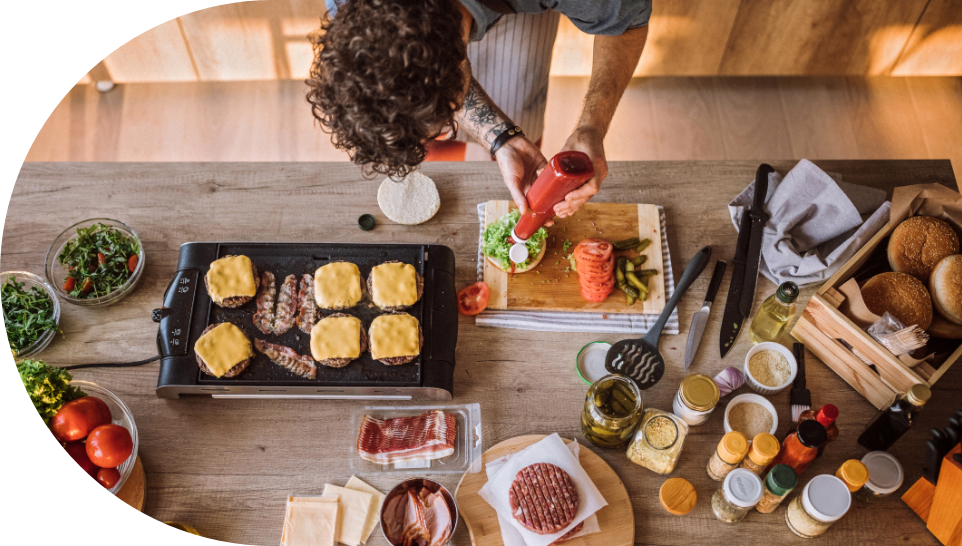 As meat lovers, they knew it wasn’t realistic to give up meat completely. But what if there were a way to simply reduce the amount of beef enough to make a real difference without compromising on taste or ingredient quality? So they got to work in the kitchen with the goal of creating a 50% beef, 50% veggie burger that tastes even better than BOTH a 100% plant burger and a 100% beef burger. How, you ask? We put popular flavor enhancing toppings like roasted mushrooms, caramelized onions and roasted garlic inside our burgers!